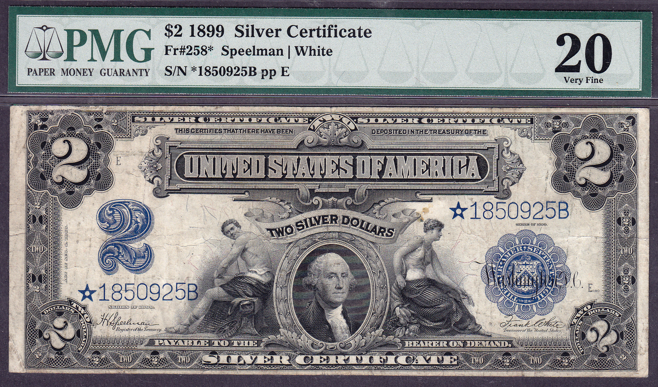 Fr.-258* 1899 $2 Silver Certificate Star Ser. # *1850925B PMG VF-20