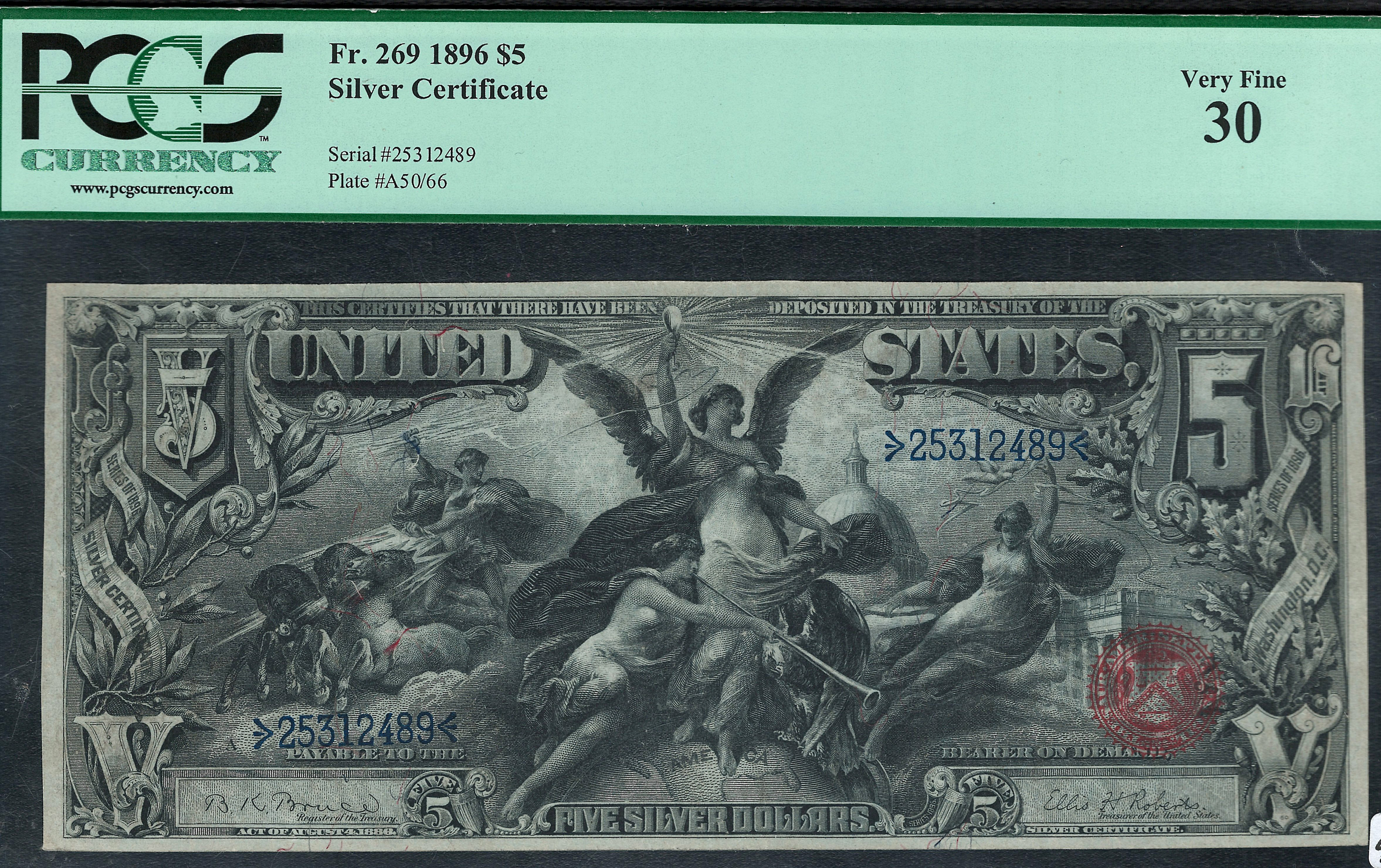Fr.-269 1896 $5 Educational Silver Certificate Ser. 25312489 PCGS-30