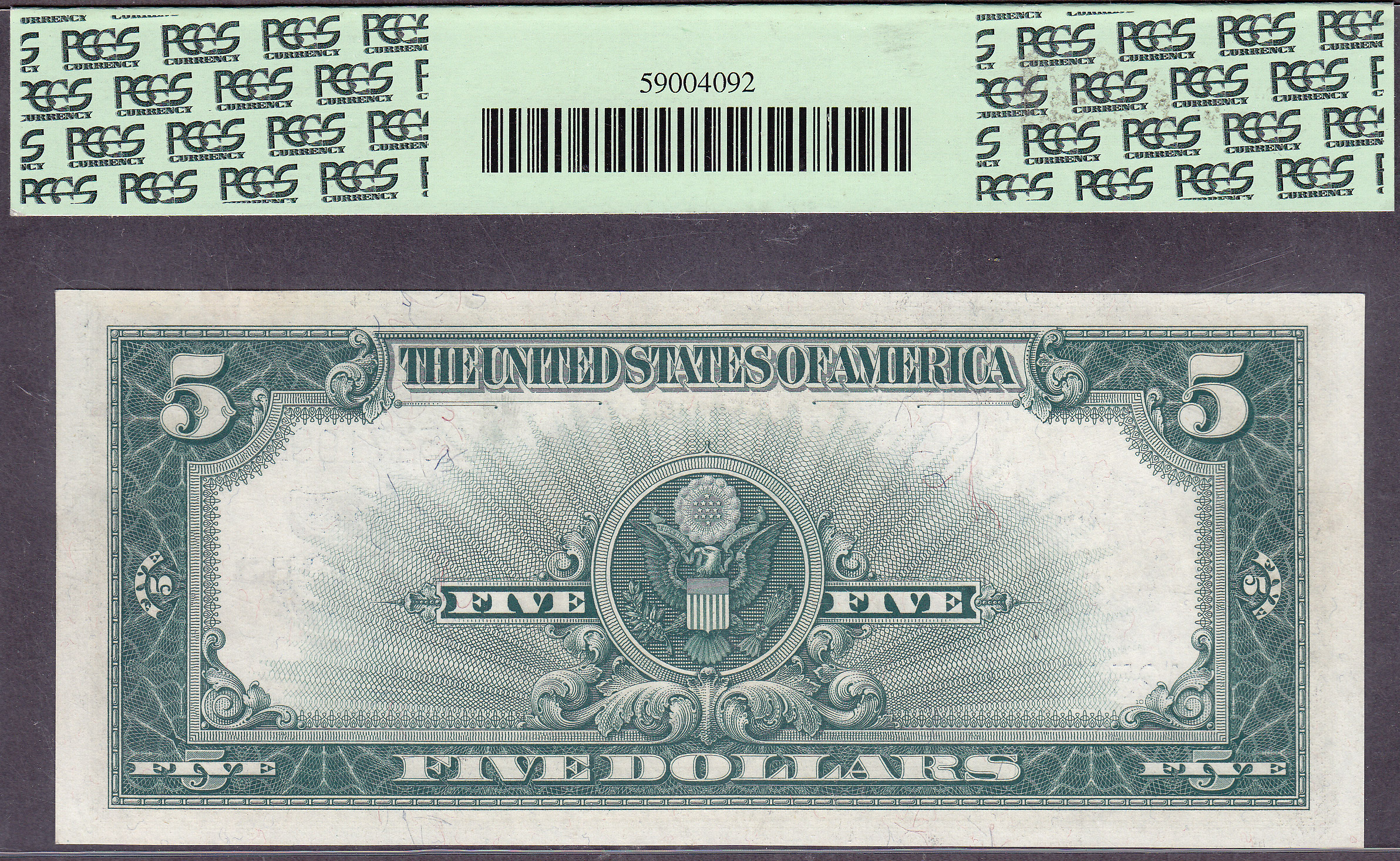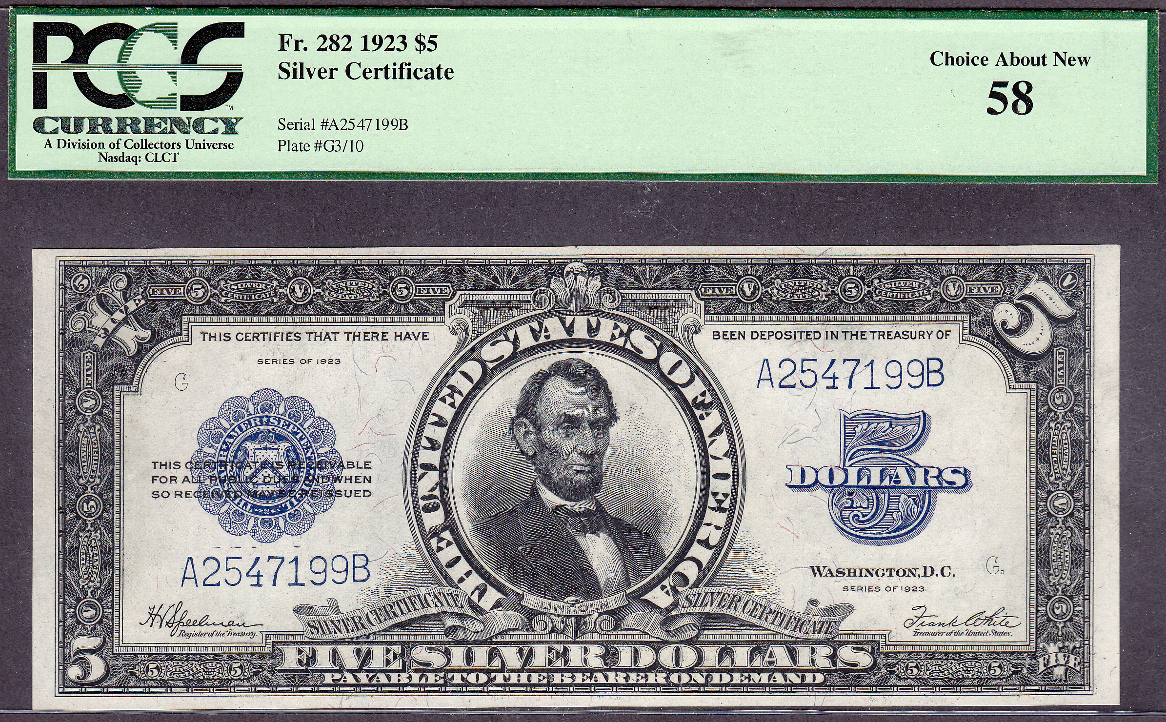 1923 $5 Silver certificate commonly referred to as the Porthole Note. it has been graded as PCGS-58. The serial number is A2547199B. You won't be able to beat the price on this one anywhere. It should last a couple of days on this site.