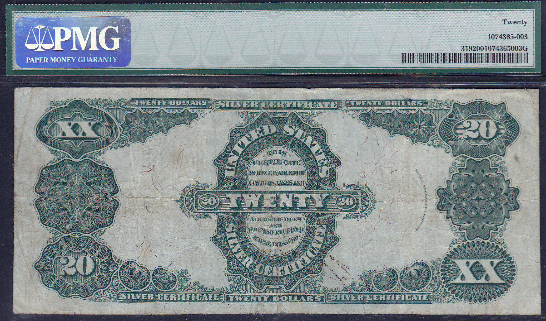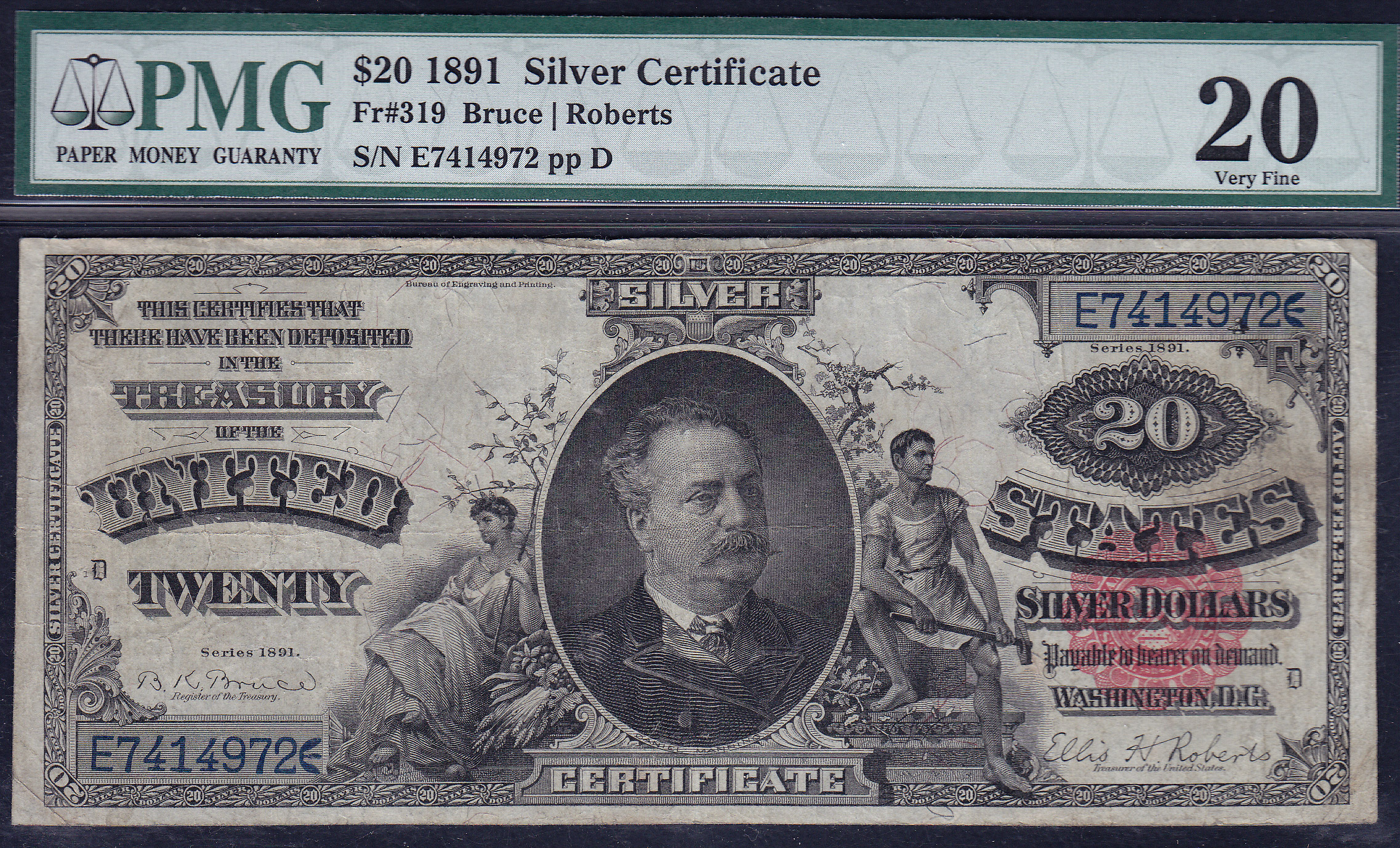 Fr.-319 1891 $20 Silver Cert. PMG VF-20 Serial # E7414972