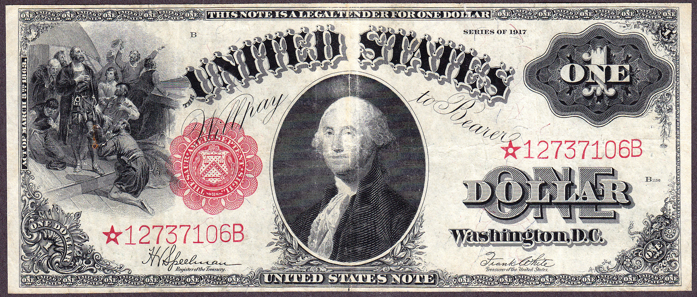 Fr.-39* 1917 $1 Legal Tender Star Ser. # *12737106B Raw