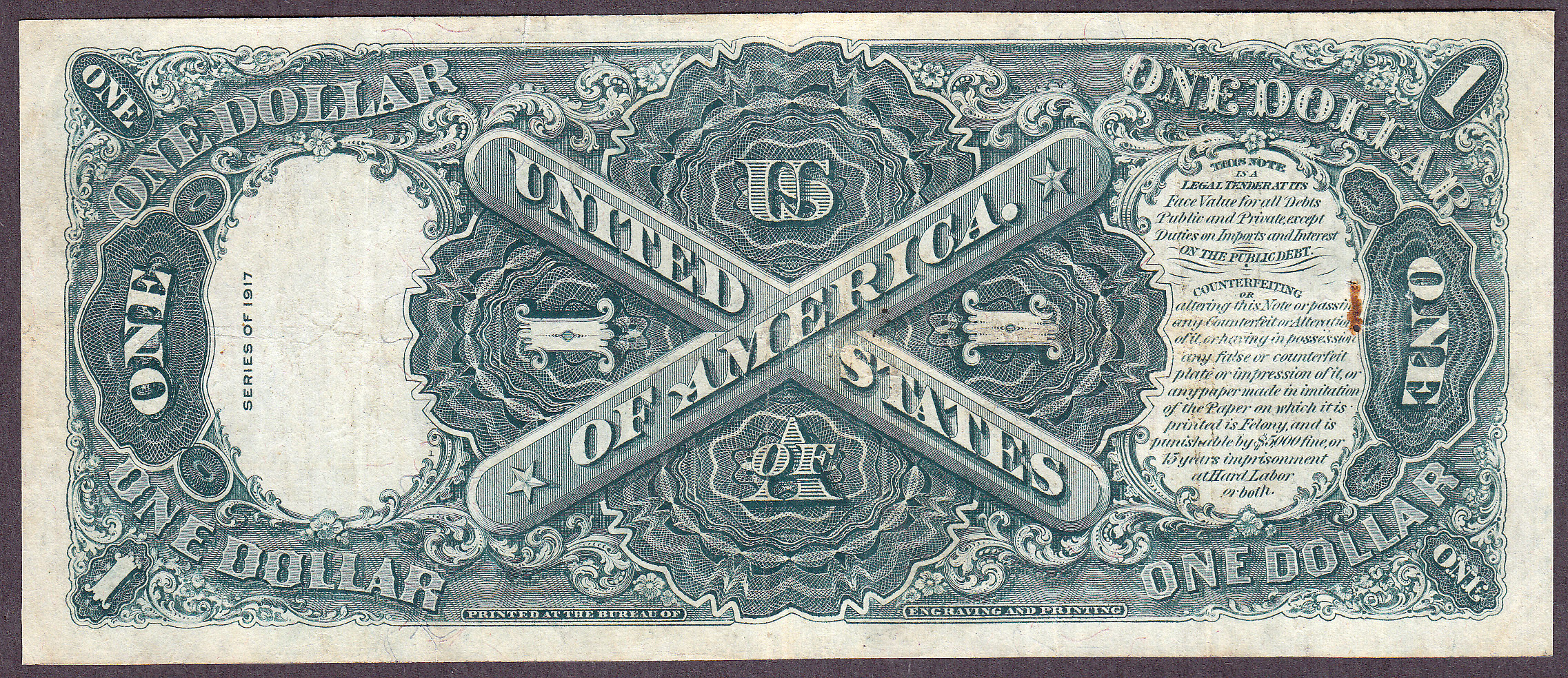 This is a Fr-39 1917 $1 LT star. it looks a lot better than the scan. there is two pinholes in the Vignette on the left evidenced by the brown spot on the back. There is also a small pinhile on the right side face. But the price is compansated for it.