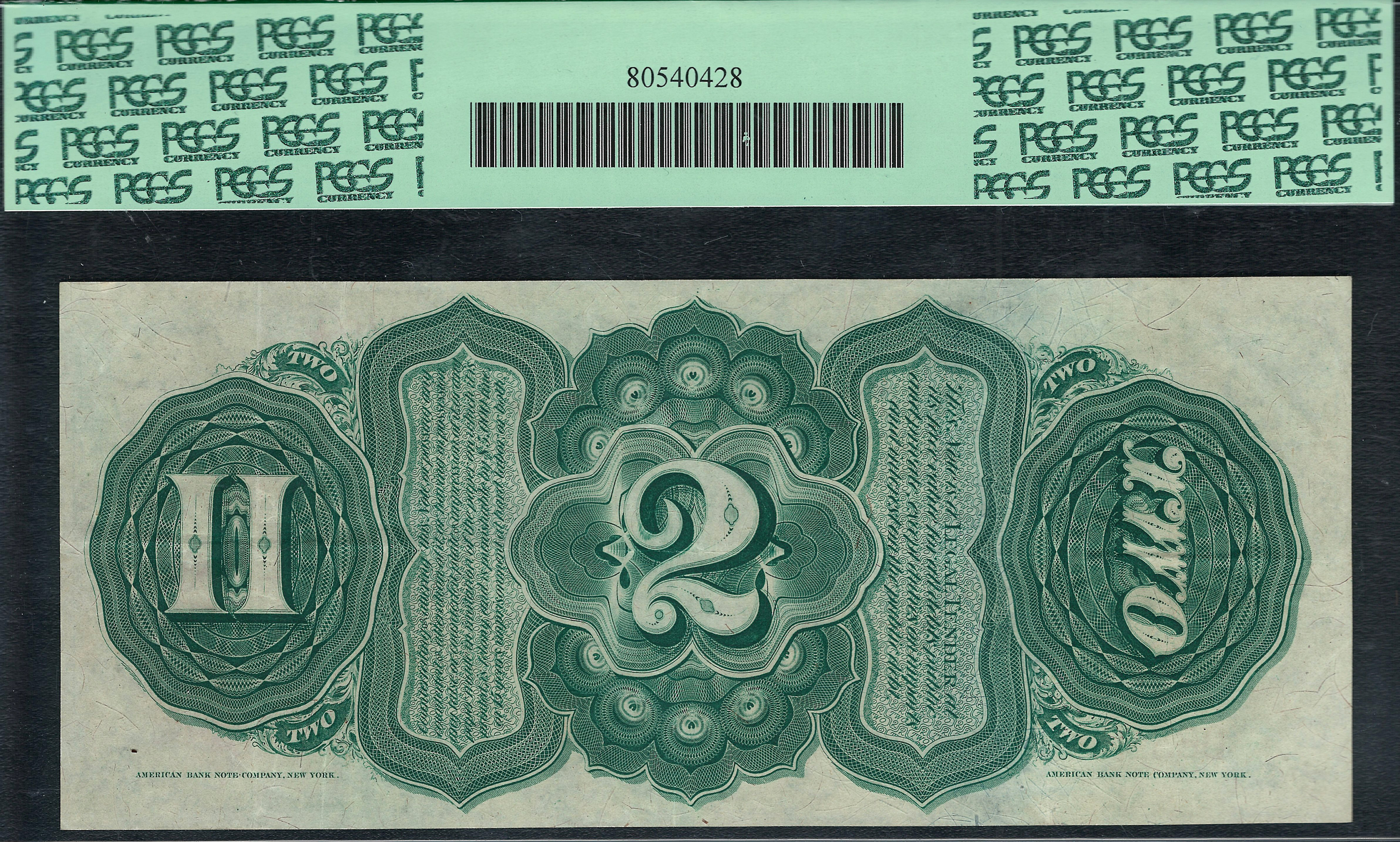 This example has absolutely NO issues of repairs, pinholes or cleaning. That is why PCGS has given it the PPQ designation. If you are looking for a totally original high end very fine 1869 $2 rainbow note that will not set you back $7K to $10K, you have to seriously consider this one. This beauty is really priced to sell quickly!