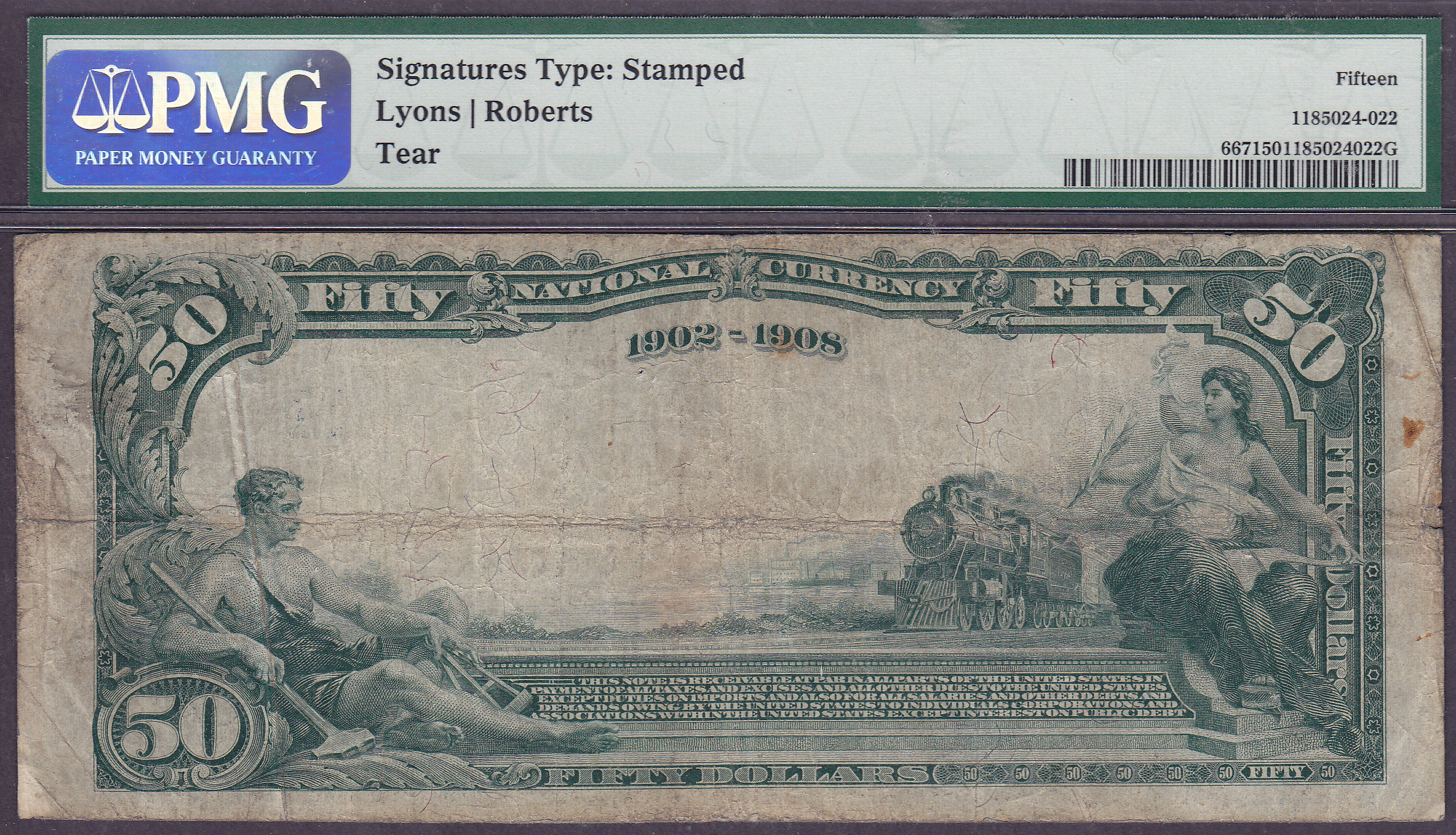 Fr.-667 1902DB $50 Ch. 24 Cincinnati, OH Ser. 4967 PMG F-15