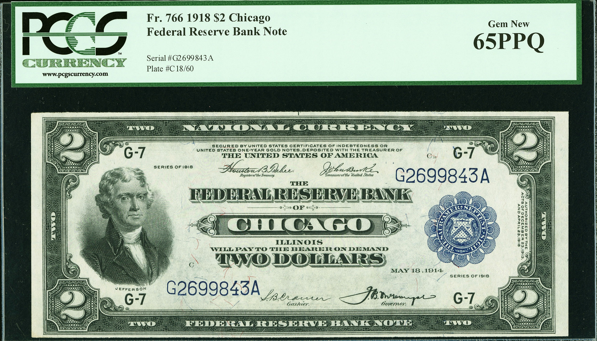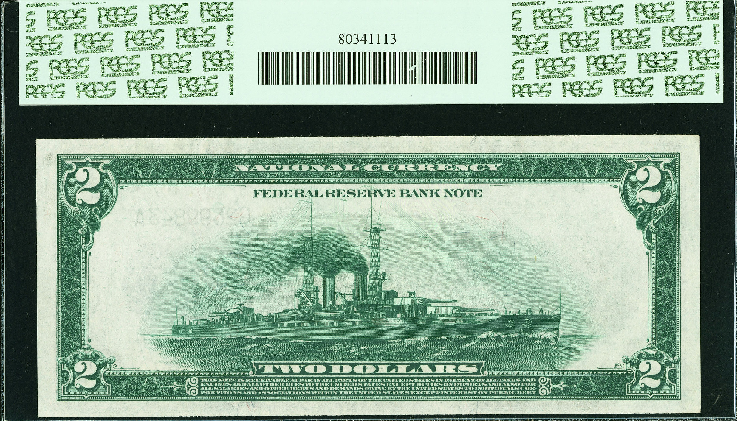 This is a scarcer Battleship number, particularly in the highest grade ranges. PCGS has only graded twelve pieces with this the only uncirculated example, and PMG has only graded 15 specimens, with one grading a 63 and one a 65. This is a lovely note with a distinguished pedigree from the Herman Halprin Collection sale of March 1993, where it was lot # 363.