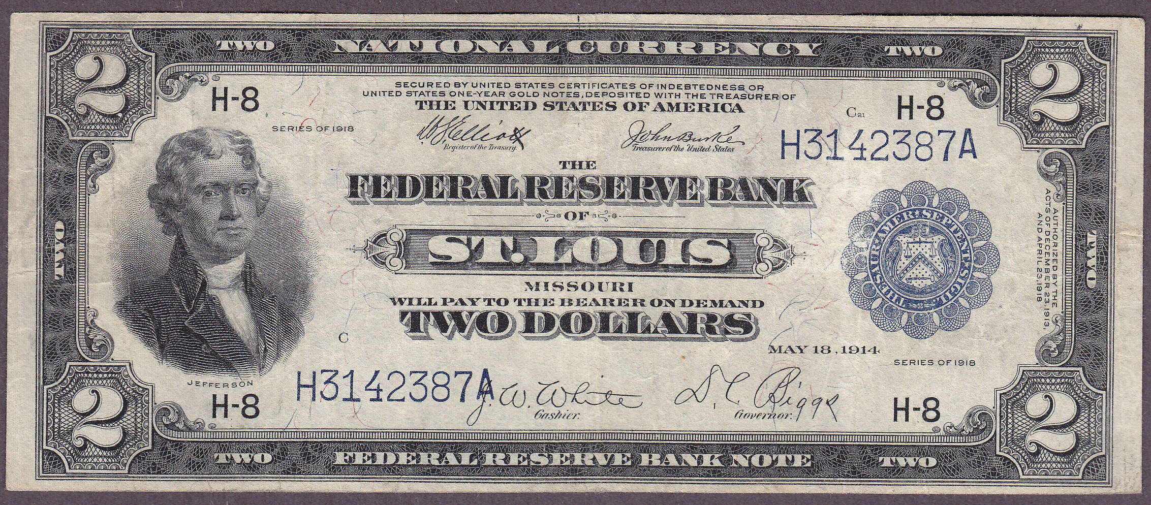 Fr.-771 1918 $2 St. Louis FRBN Ser. H3142387A VF