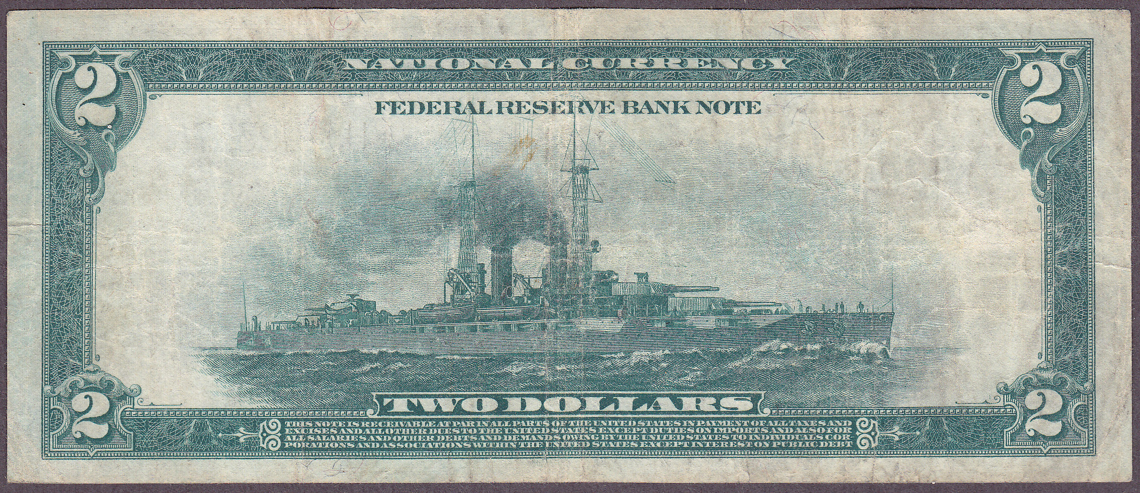 I bought this 1918 $2 St Louis Battleship note at a local coin show and have not had a chance to get it graded by PMG. It is a solid VF-30/35 with no problems. It is hard to find any 1918 $2 St Louis Barttleships period. I picked this one up for a good price so I am selling it at a good price. The serial number is H3142387A. I am lloking for one in UNC condition but as of now I have not been able to locate one. You can not beat the price.