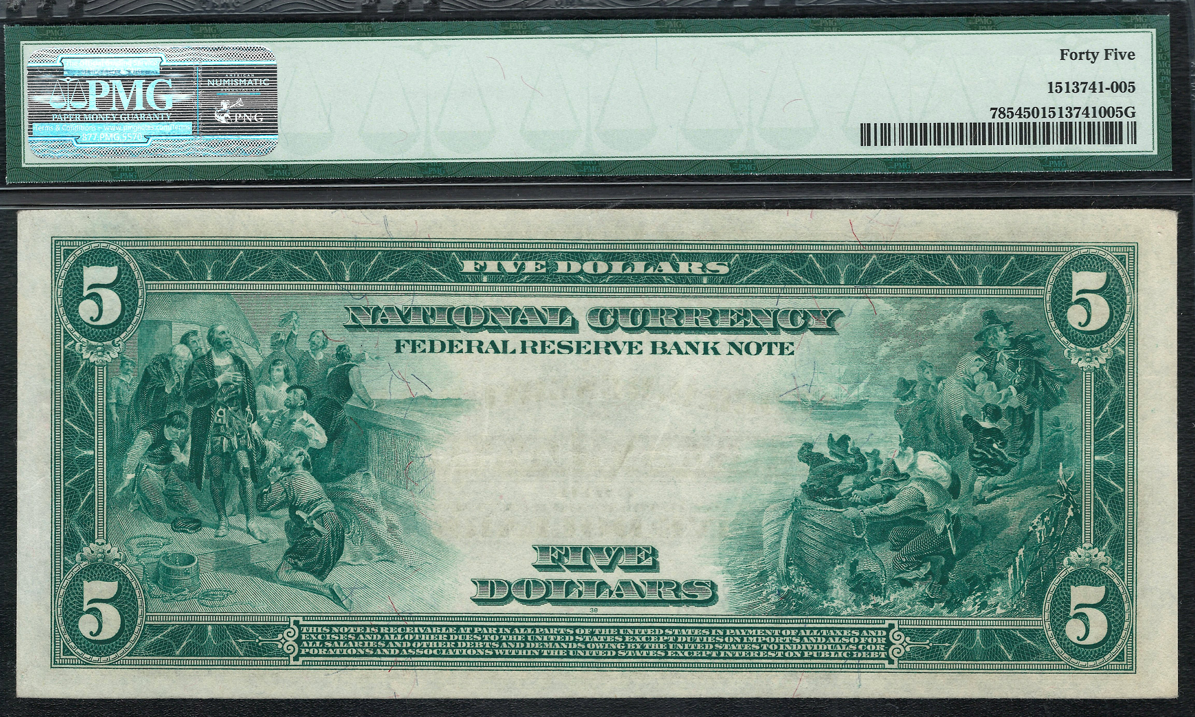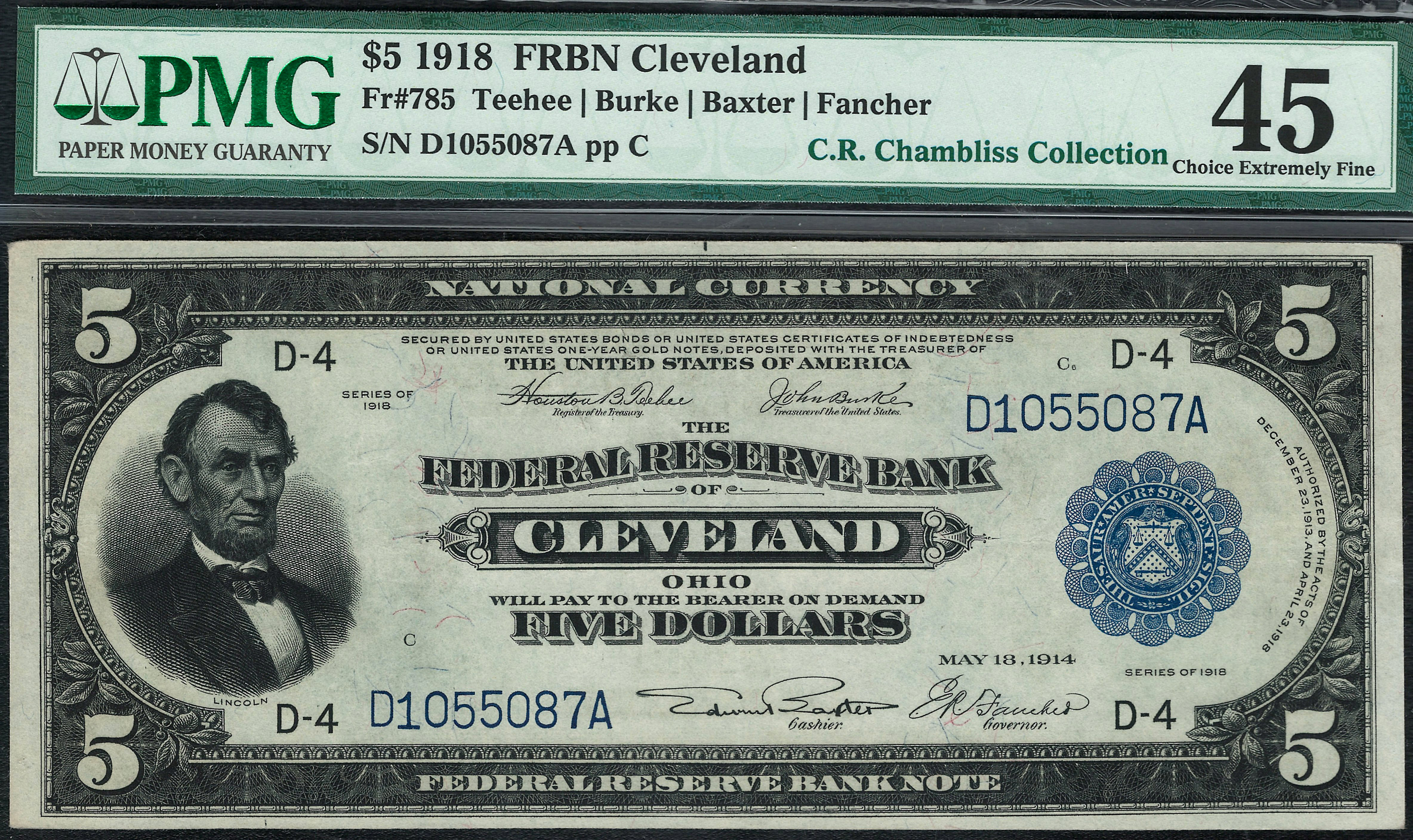 Fr.-785 1918 $5 Cleveland FRBN Ser. D1055087A PMG-45
