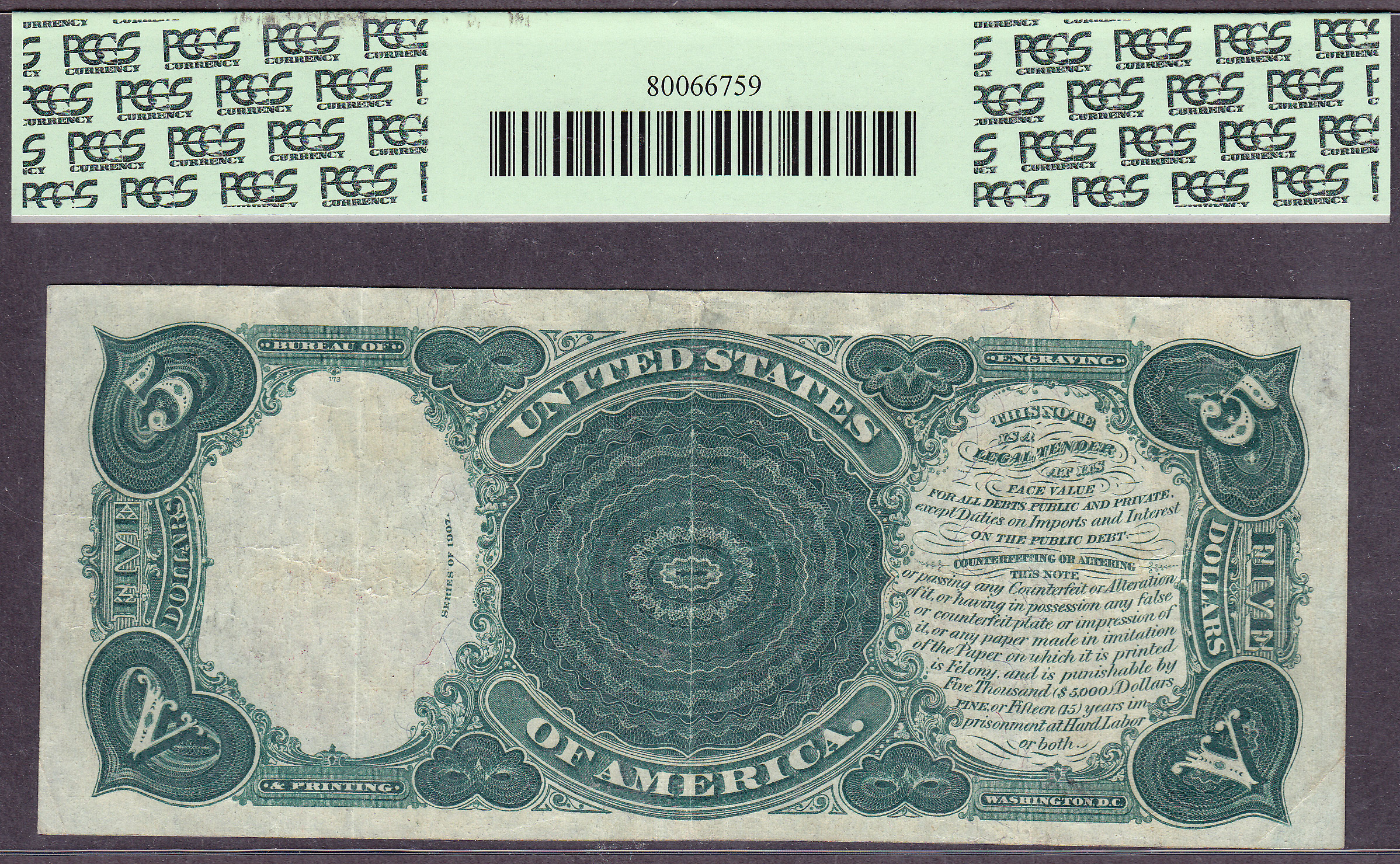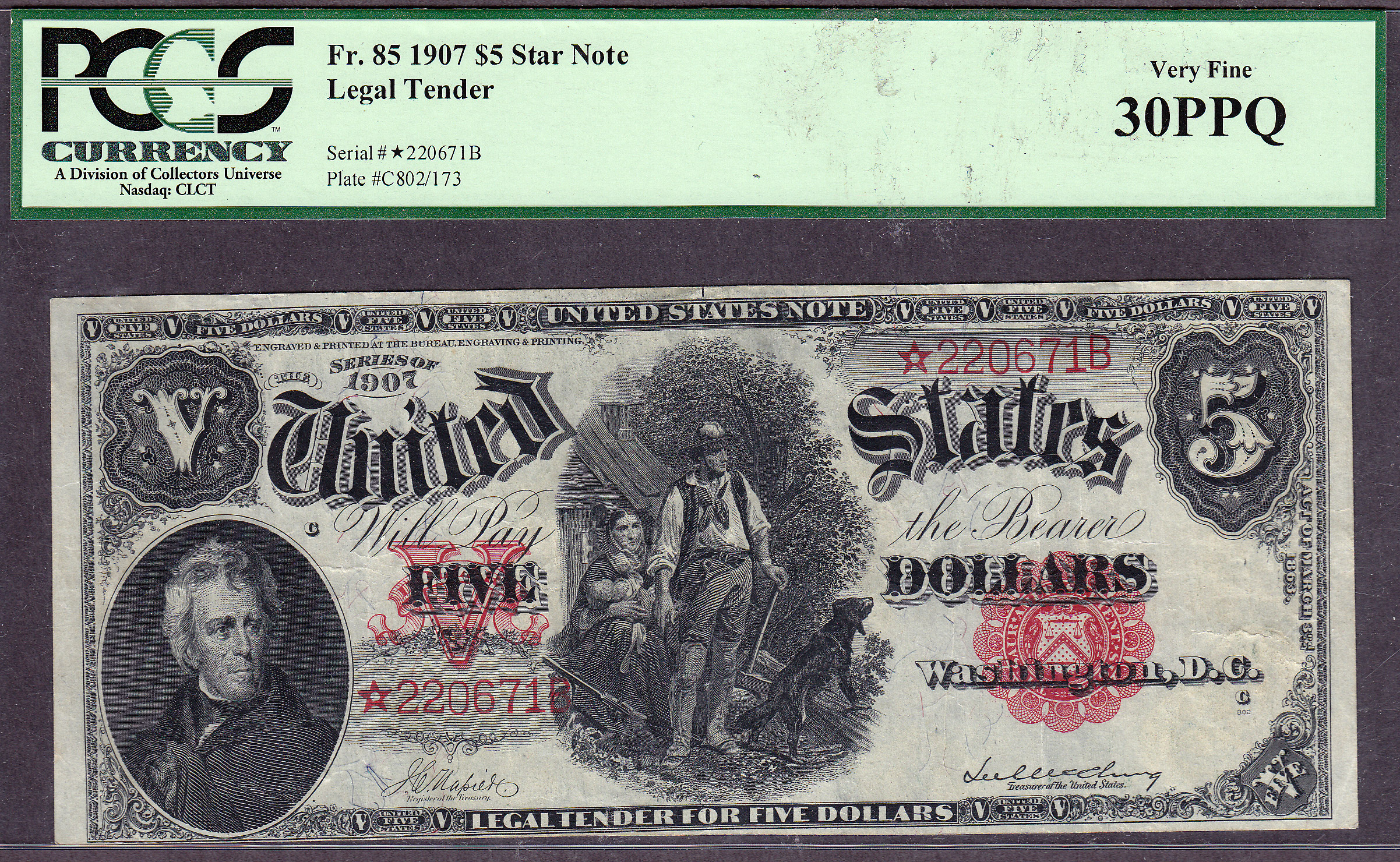 Fr.-85* 1907 $5 Legal Tender Ser. # *220671B PCGS VF-30PPQ
