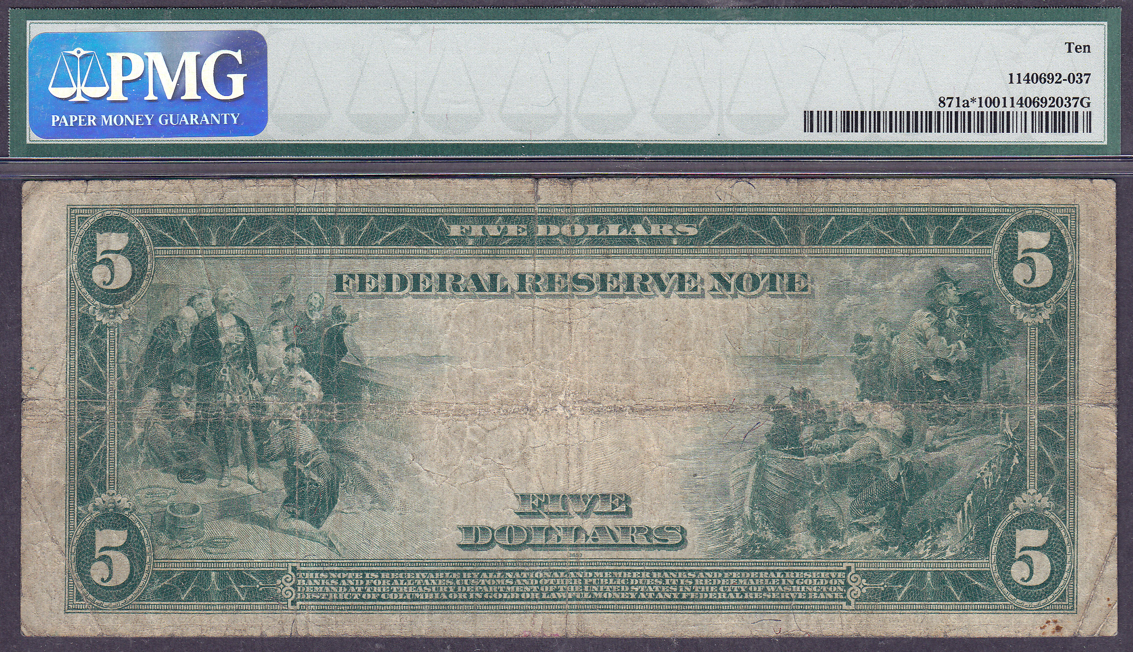 This is a 1914 $10 FRN from the Chicago District. The serial number is G1320144* and it is in a PMG-10 Holder, There are 56 known as of Jan 2014. Nice note for the price.