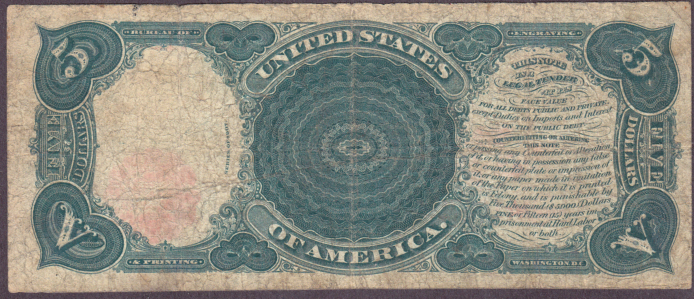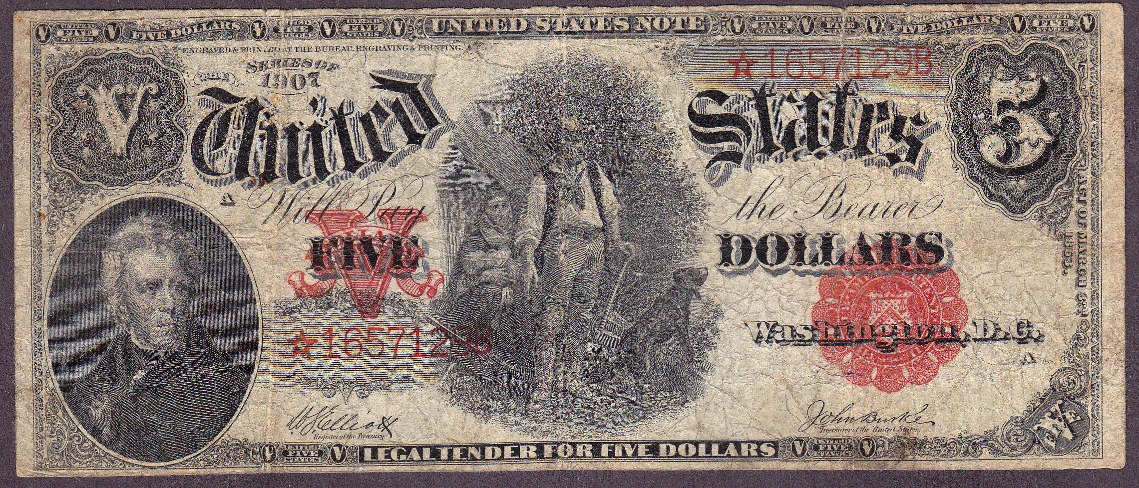 Fr.-89* 1907 $5 Legal Tender Star (10 known) Ser. # *1657129B Fine
