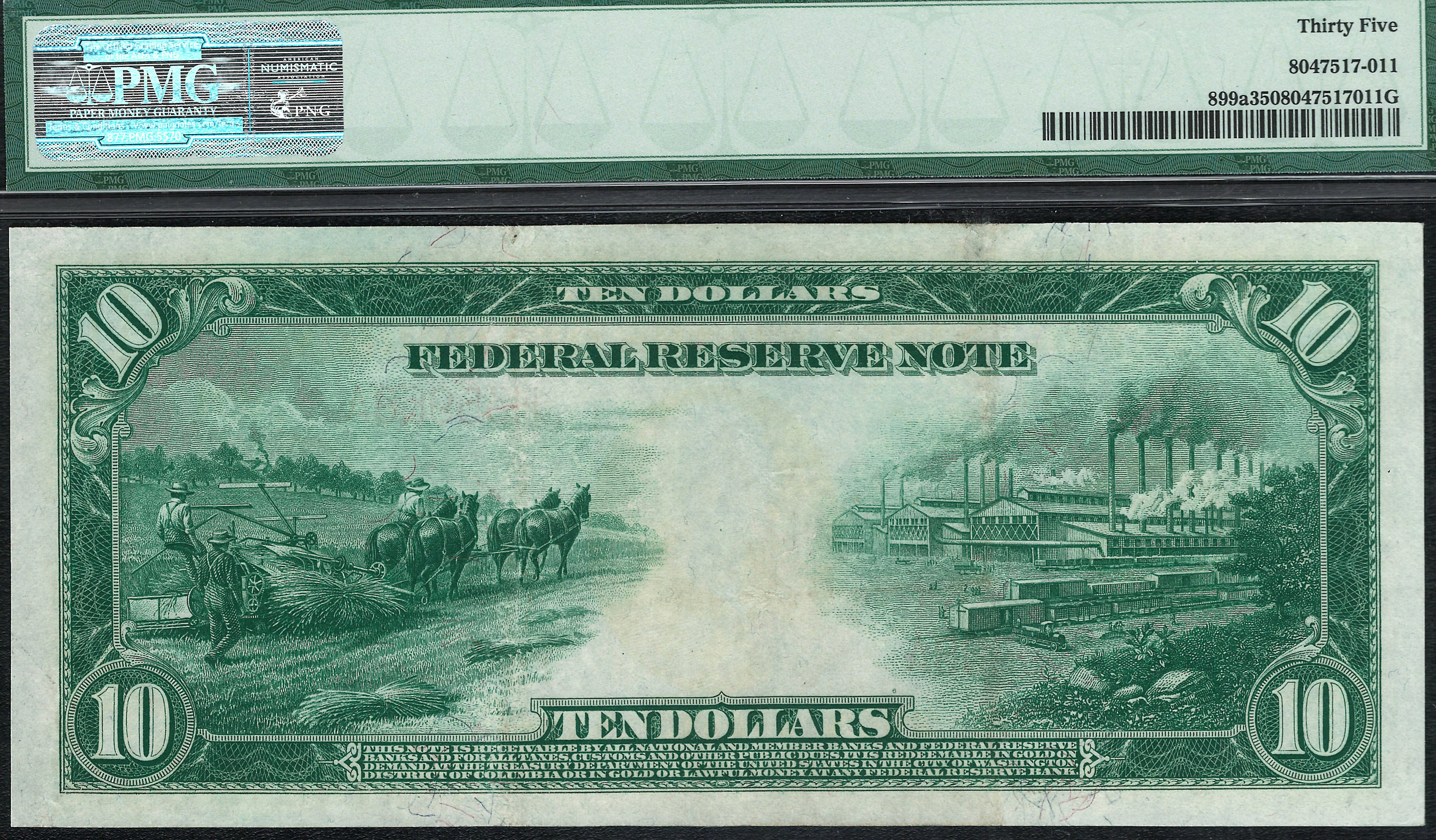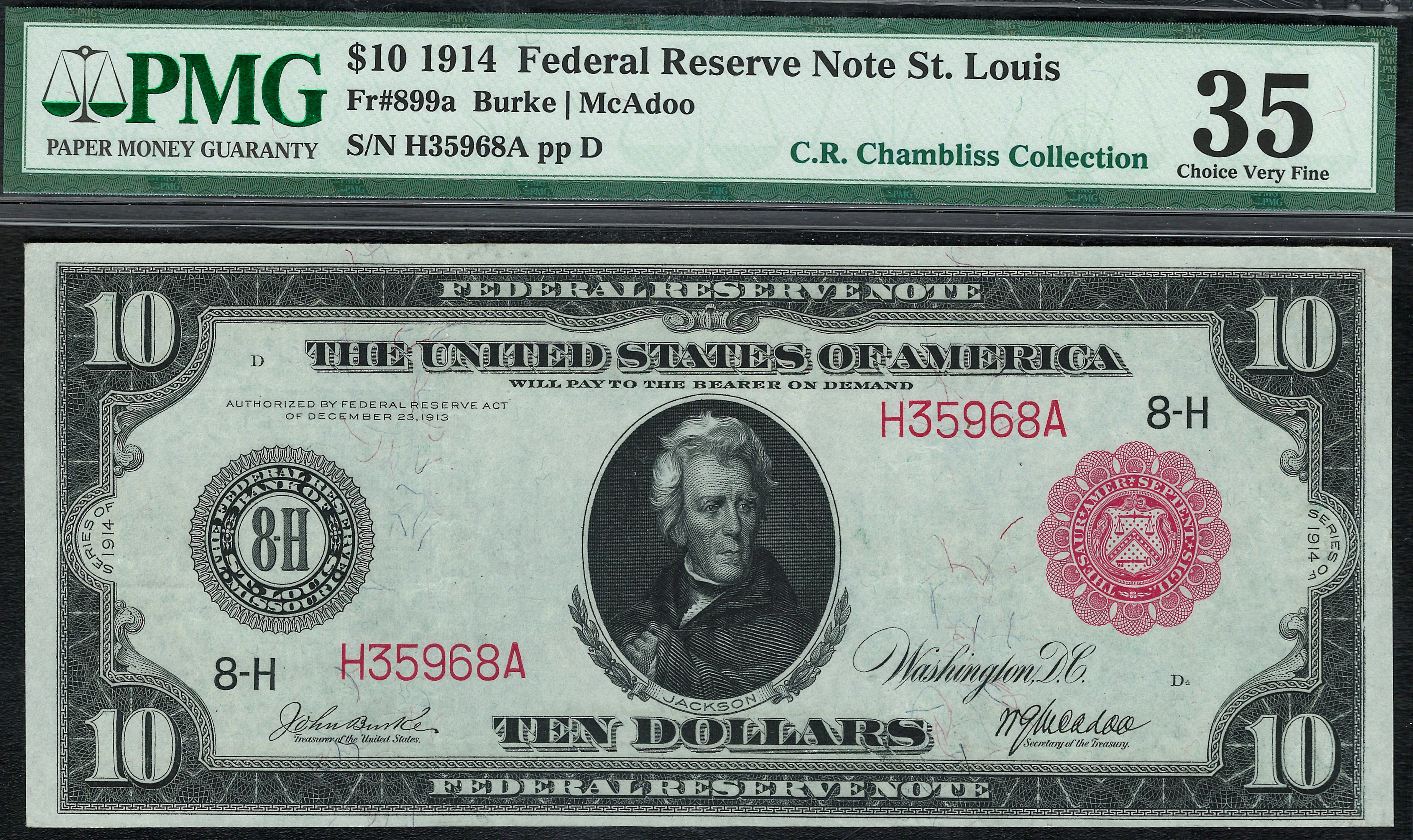 Fr.-899a 1914 $10 St. Louis FRN (RED SEAL) Ser. H35968A PMG 35