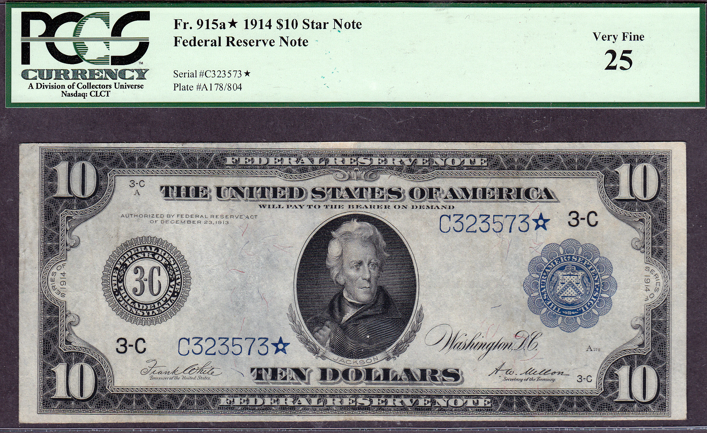 Fr.-915a* 1914 $10 FRN Star Ser. # C323573* PCGS VF-25