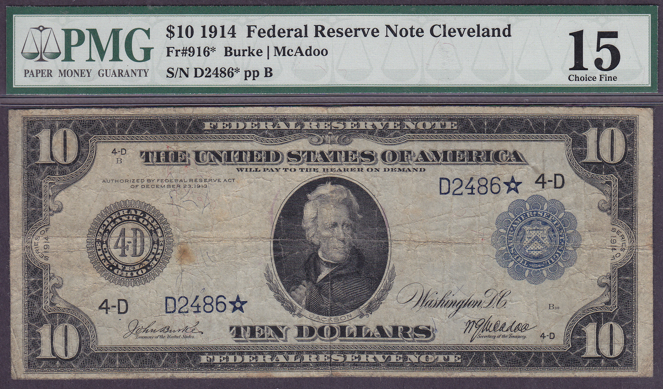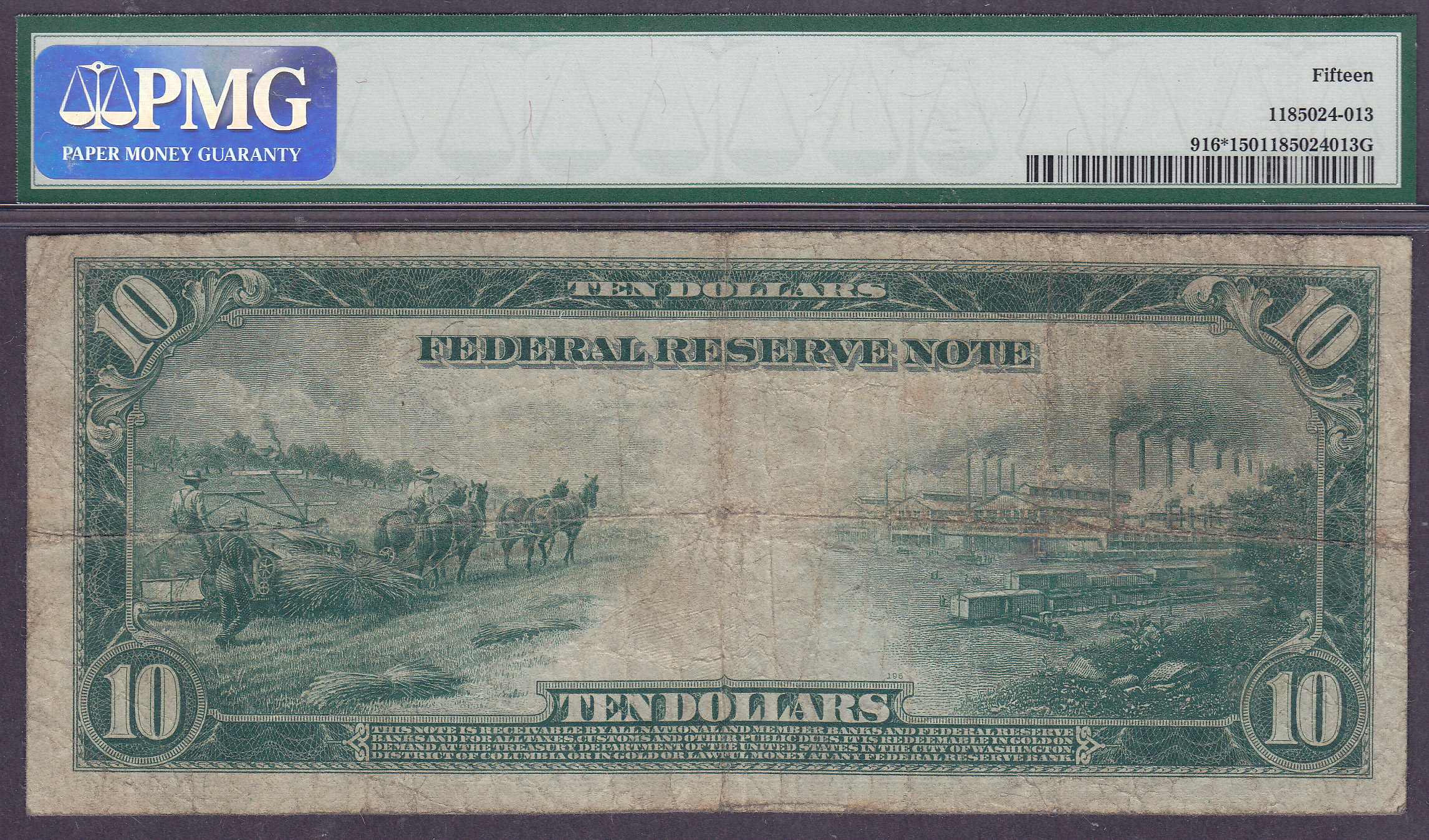 POP1/ None finer! This is the ONLY TWO KNOWN according to Murrays 2007 Star Book. He also list if for $5,000 in VF condition. The serial number is D2486*. There are no pinholes, rips or tears. Thats very uncommon on large size stars. This note is in a pMG F-15 holder