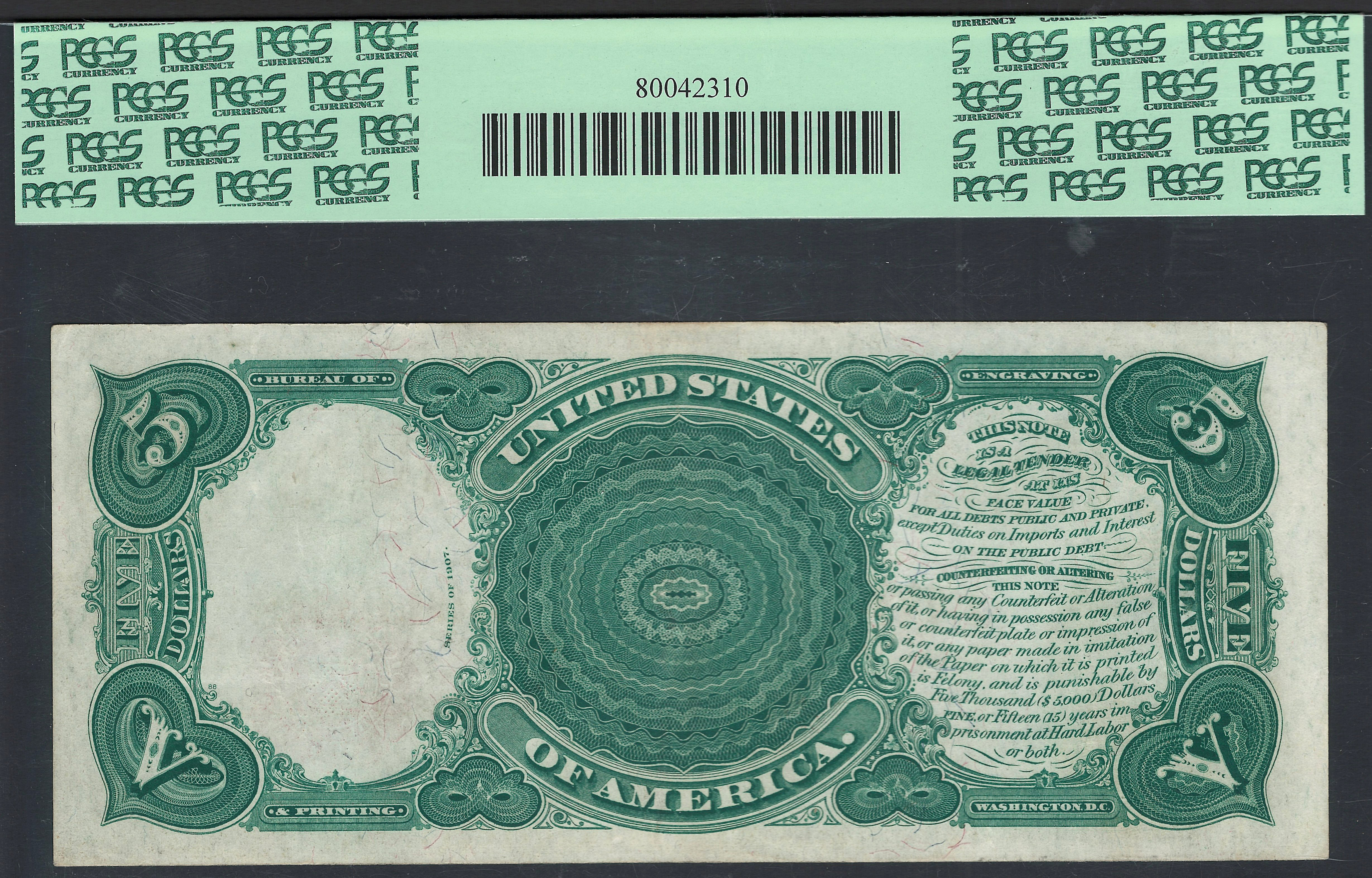This is a very nice and original example of the 1907 $5 Legal Tender. It is commonly referred to as the Woodchopper or Pioneer Family Note. The portrait of Andrew Jackson the seventh President of the US is at the left. What make this note so unusual is that it is in a PCGS-53PPQ holder. Most mid graded notes have been pressed and cleaned to achieve a higher grade. This note is totally original and has never been pressed or cleaned. That is why it received the PPQ designator from PCGS. There are no rips, tears or pinholes. It is priced to sell quickly. The serial number is H68546221 and resides in a PCGS-53PPQ holder.