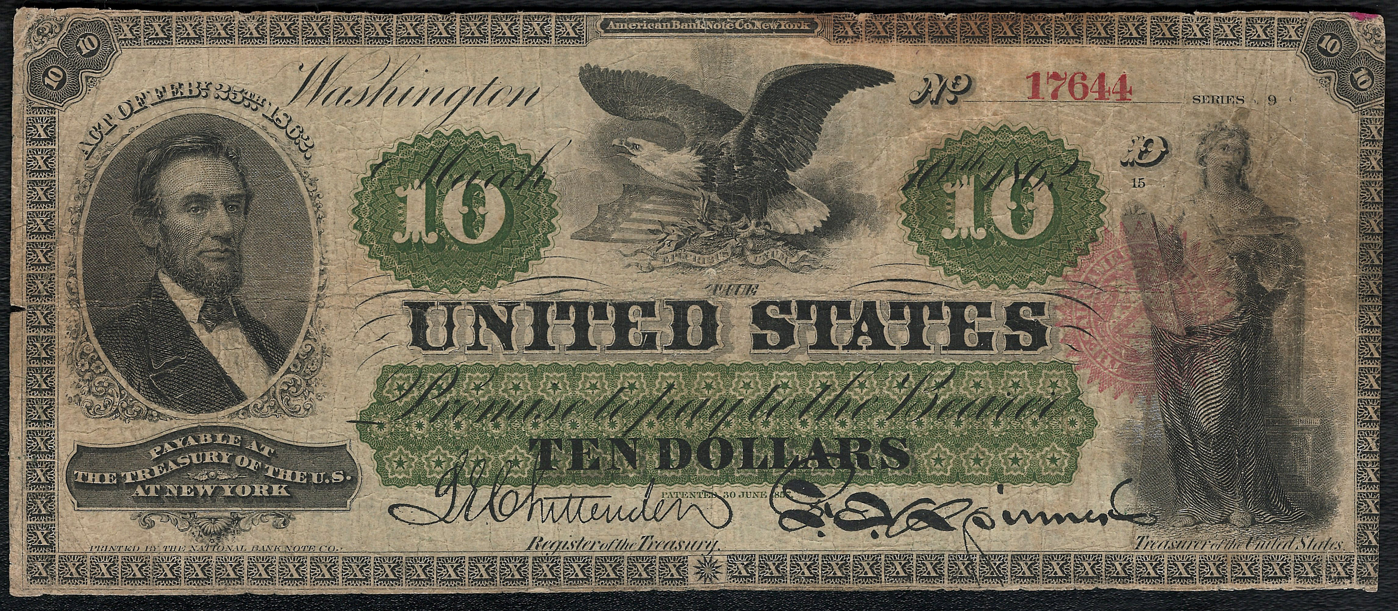 Fr.-93 1862 $10 Legal Tender Ser. C17644 Raw