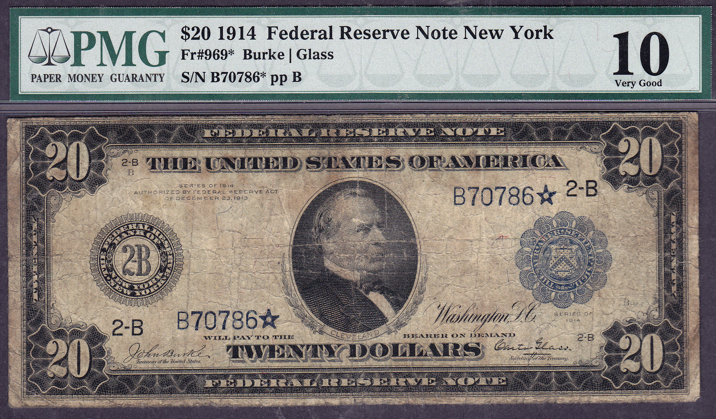 Fr.-969* 1914 $20 New York FRN Star (5 Known) Ser. # 70786* PMG VG-10