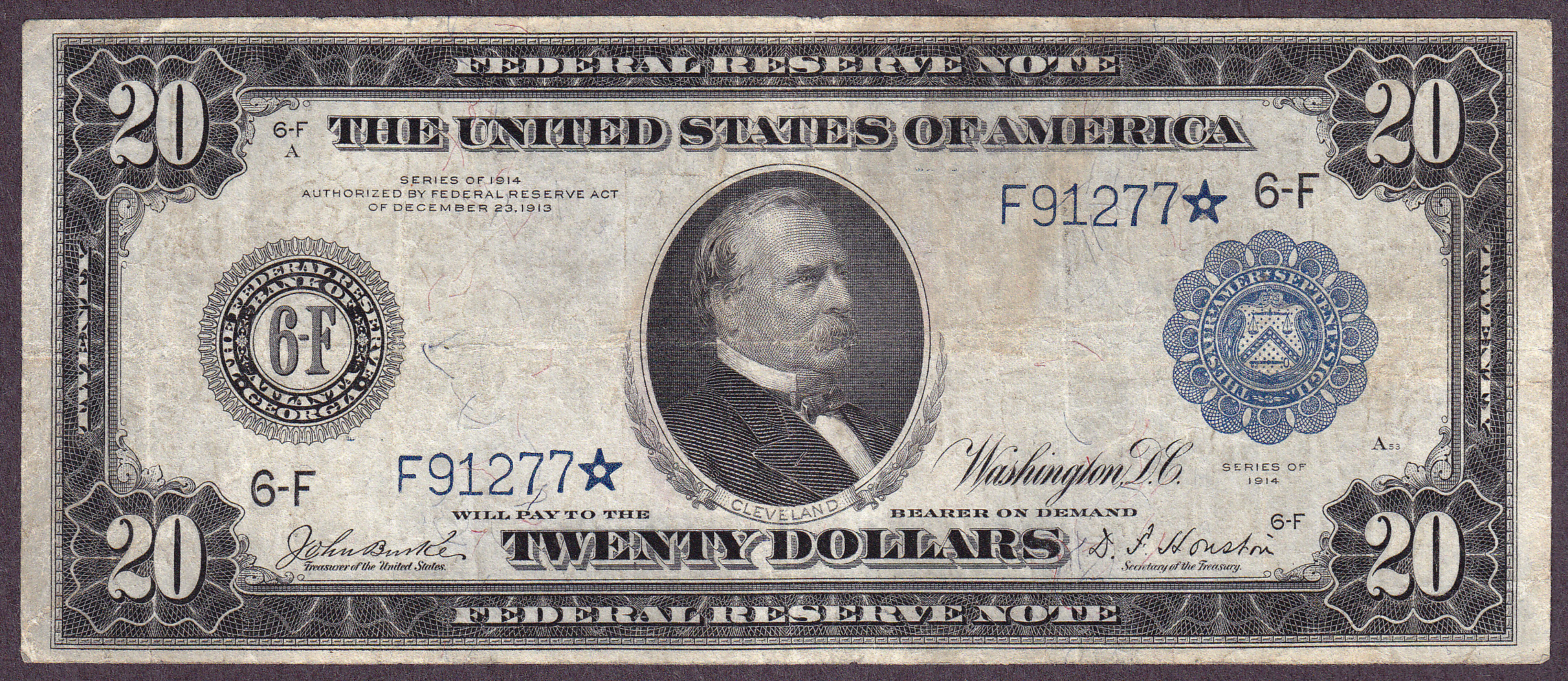 Fr.-986* 1914 $20 FRN Star ( 5 known ) Ser. # F91277* VF