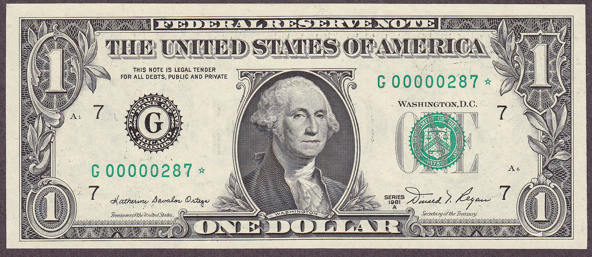 Fr.-996* 1981-A $1 Chicago FRN Ser. G00000287* Raw