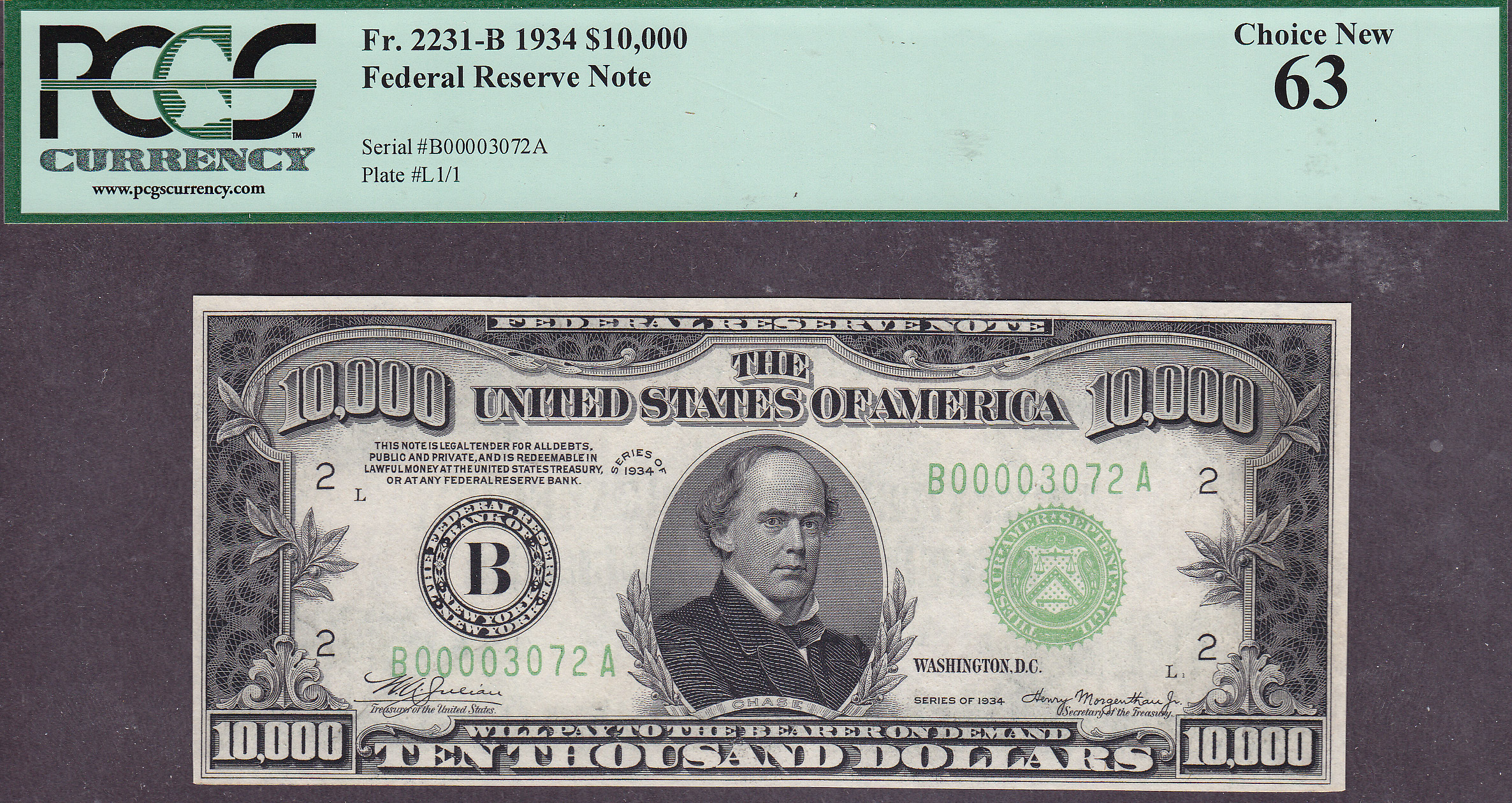 All 100 of the notes were dismantled and sold off in December 1999 to pay off some of the debt the Casino was liable for. This note is in a PCGS-63 holder. And the serial number is B00003072A. I am currently writing a book on the History of the U.S. $5,000 and $10,000 bills. There is a chapter in book of the $5,000 and $10,000 book that gives the detailed history of Benny Binion and the famous Inverted Horseshoe display of the $100 $10,000 New Yprk notes. This is part of Americana history. This is your chance to own one!