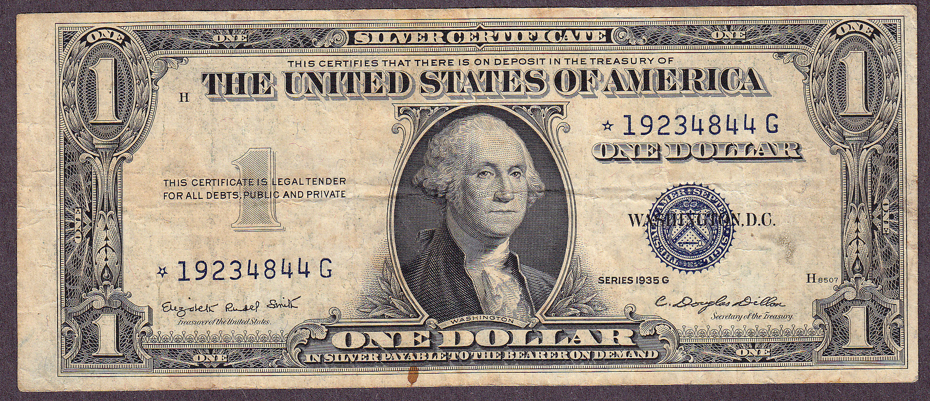 Fr.-1607*1935 $1 Silver Certificate (Inverted Star Error) Ser. # *19234844G Raw