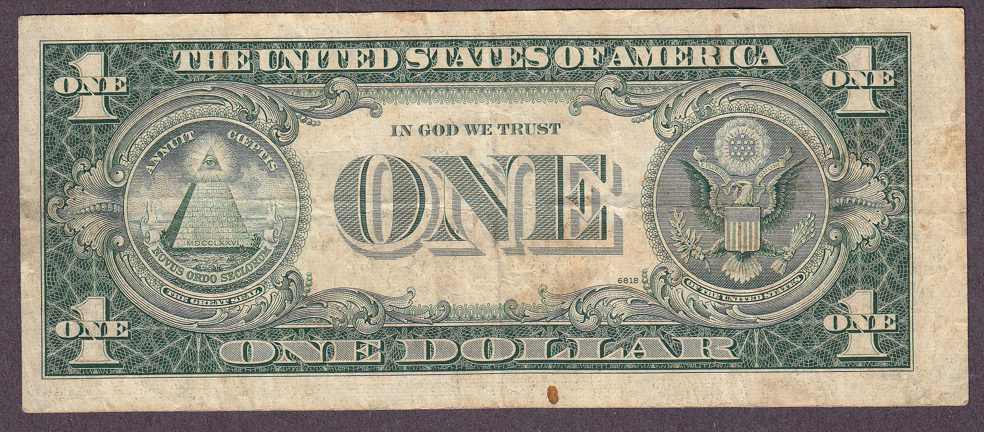 Check this 1935 $1 Silver Certificate out. Have you ever owned a true Inverted Star? Look at the star on the left serial number. Now look at the star on the right side serial number. Notice the difference on how the star sits on one point. It should sit on two points like the right side. Pretty cool error. Generally the error is on the left side for some odd reason. A cool error for a cheap price.
