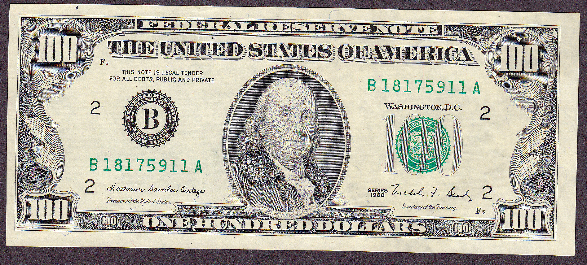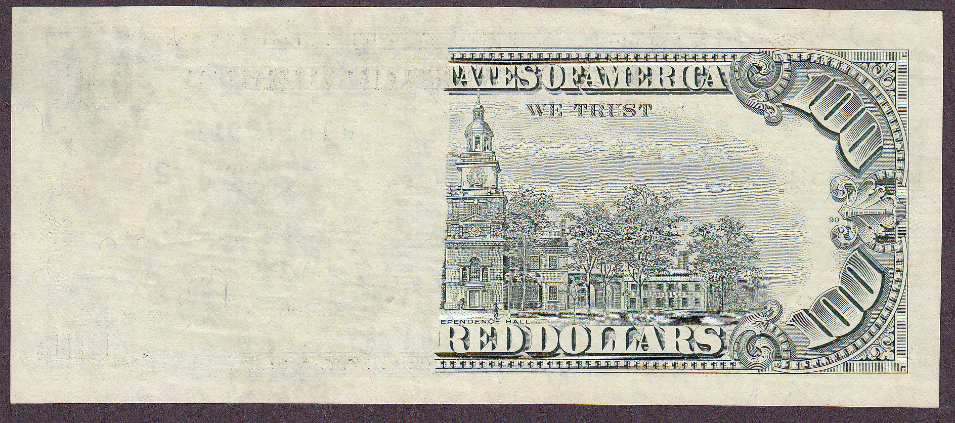 It's half there. this is a real cool major obstruction error. Look on the back of this 1988 $100 New York FRN and you can see what I am talking about. Most of them are not this dramatic. This note seems to be an UNC but I won't know till I send it in to PMG. It is priced for a quick sale, like right now!