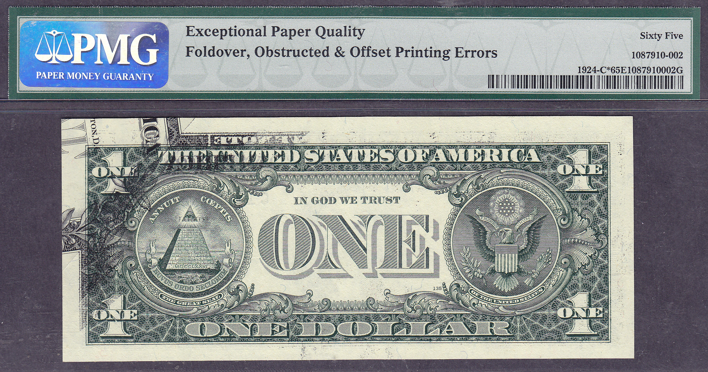 This is one "COOL ERROR". Actually its 4 errors in one. First off it's a Star Note to start with which means it was a replacement note. Secondly it is a Foldover error on the top right. Thirdly it is also an Obstructed Error on the front, and last of all its an Offset Error on the back top left from a prior note. I''ve never seen one quite like this one.